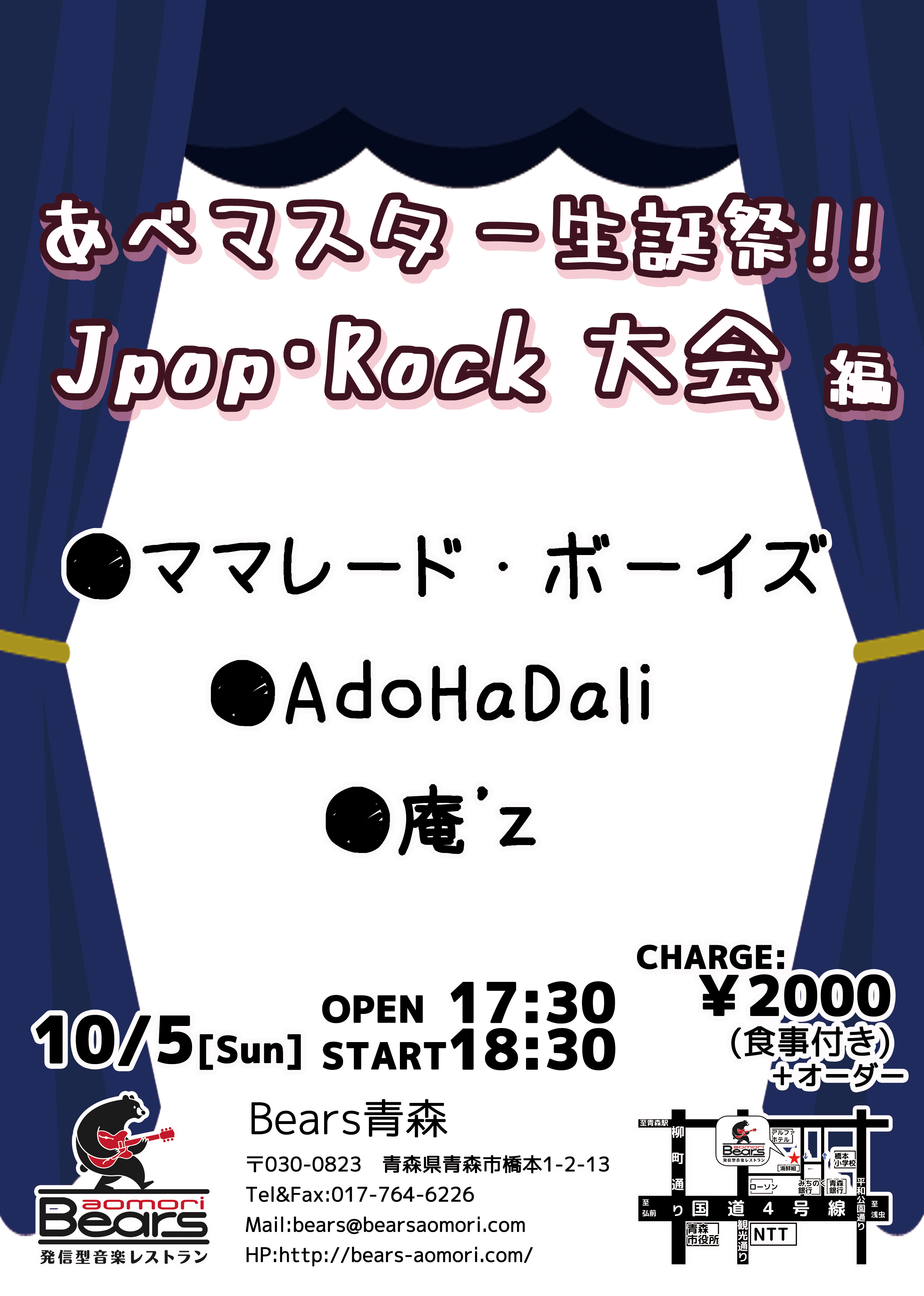あべマスター生誕祭!! Jpop・Rock大会編 | CHARGE:¥2000(食事付き)+オーダー OPEN 17:30 START 18:30 |