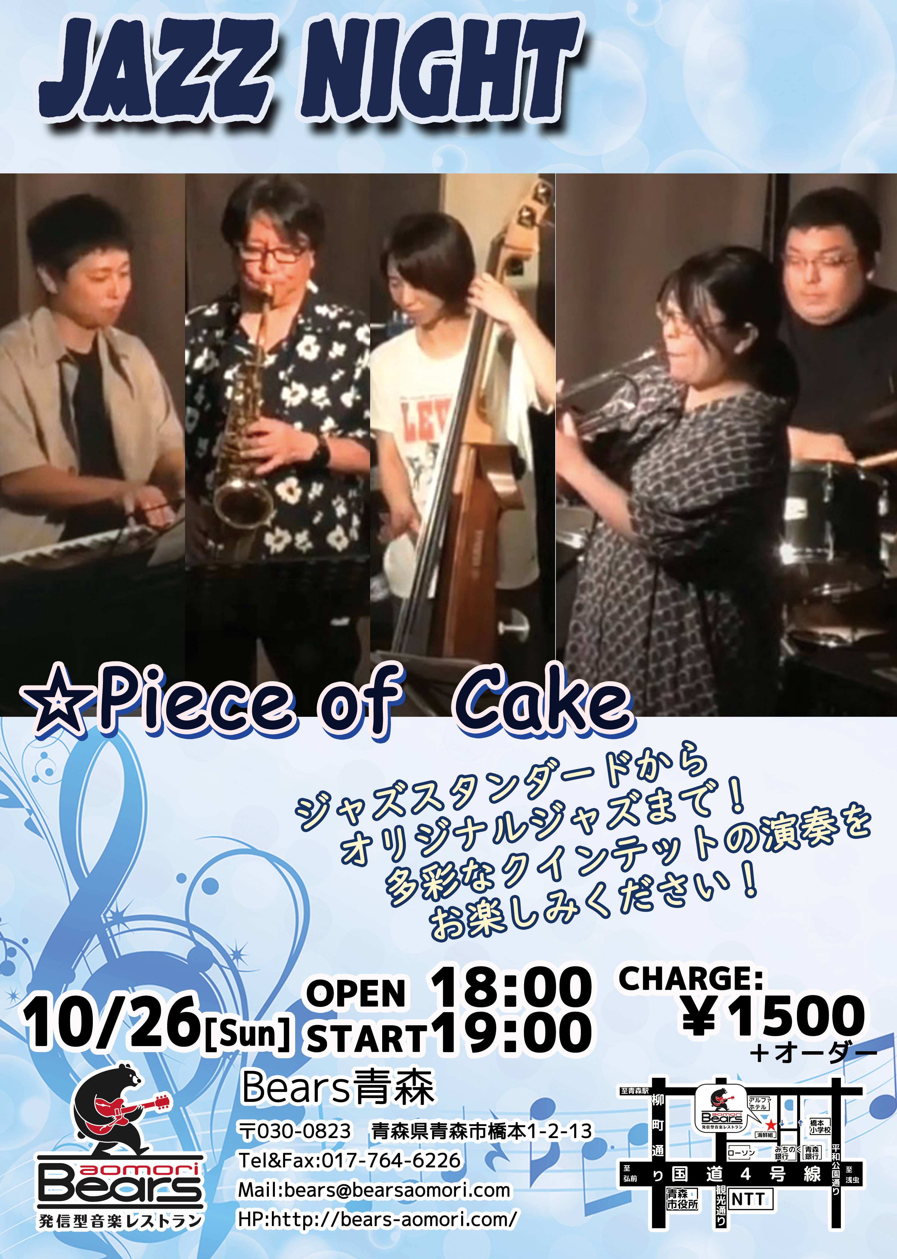 出演: ●Piece of Cake…田村勝弘(sax) 工藤真由子(tp) 佐々木悠介(p) 内山結美子(b) 須藤健介(ds) |